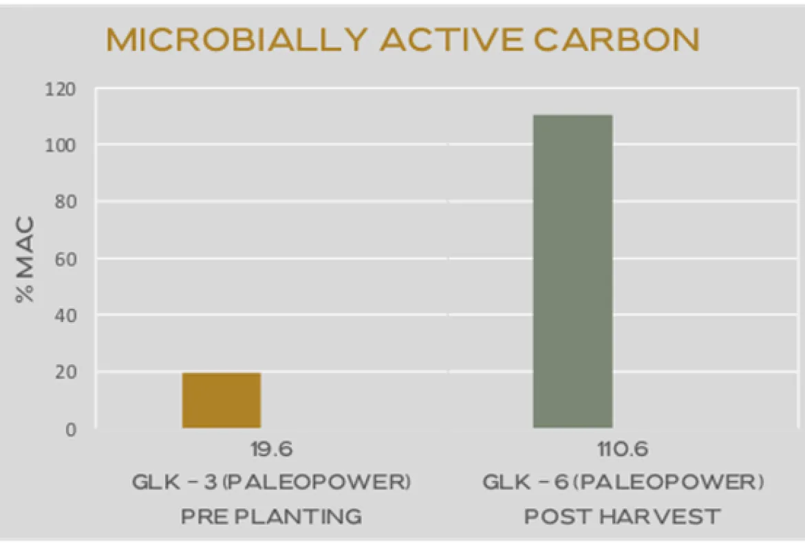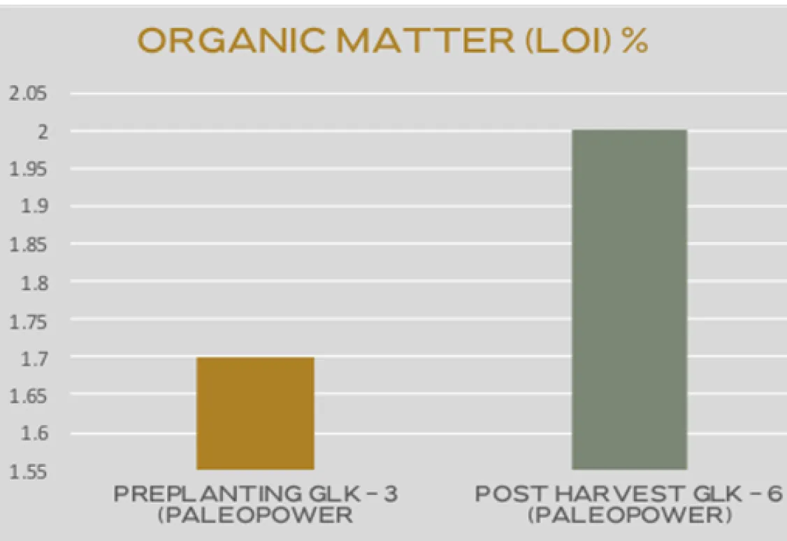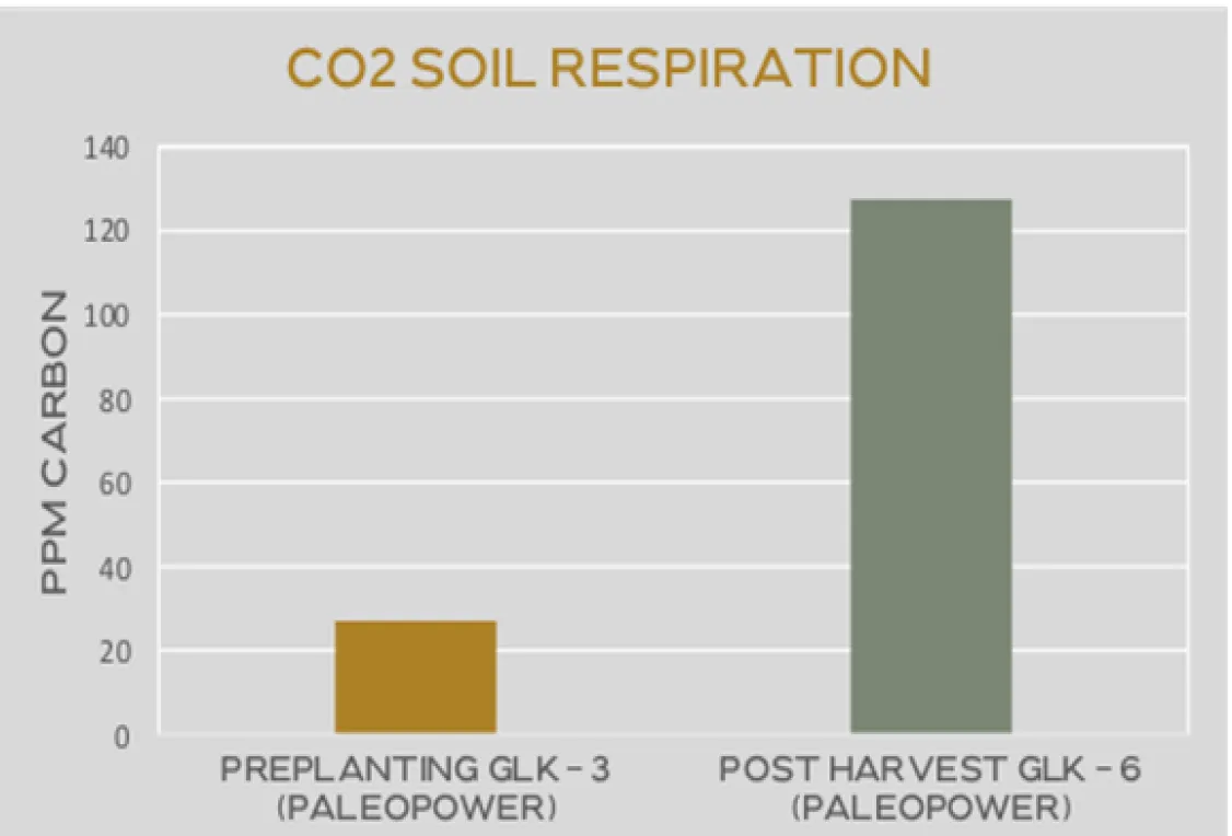 Independent analysis suggests that PaleoPower™ improves overall soil health as measured by increased microbially active carbon, increased soil CO2 respiration, and increased organic matter.