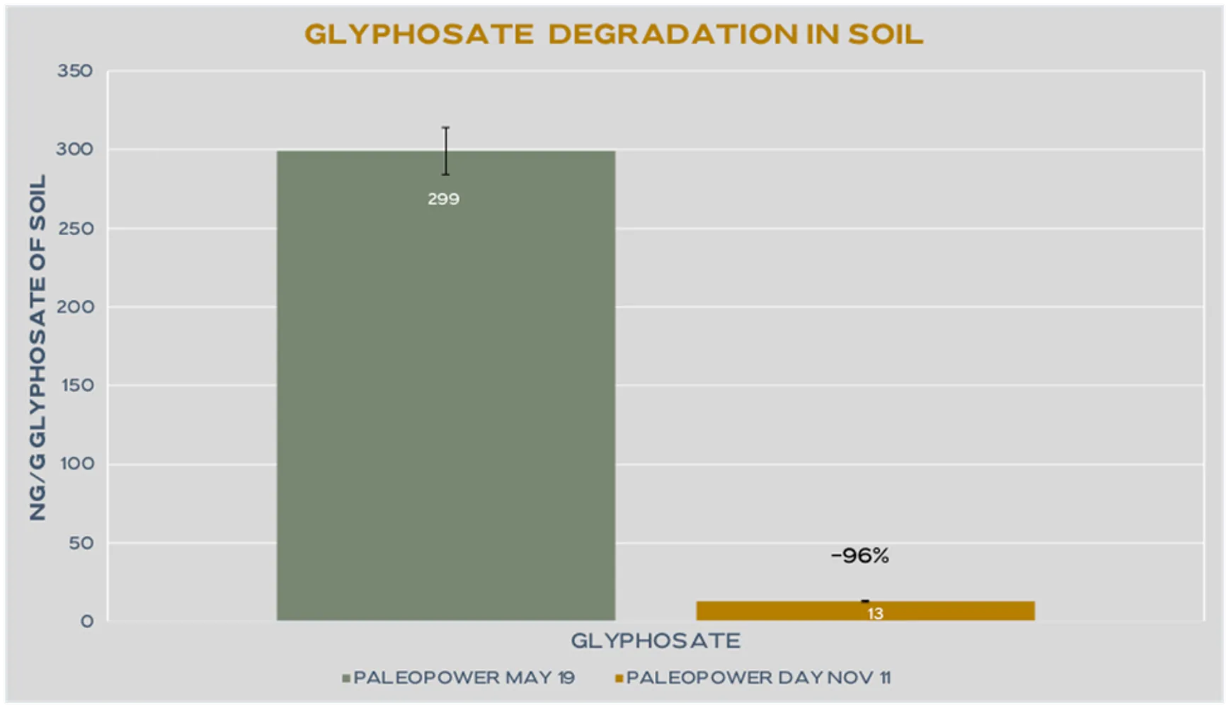 PaleoPower™ restores a healthy soil microbiome and breaks down contaminants like glyphosate. By using this innovative product, farmers and growers can improve soil quality, crop productivity, and profitability while minimizing chemical inputs for long-term sustainability.